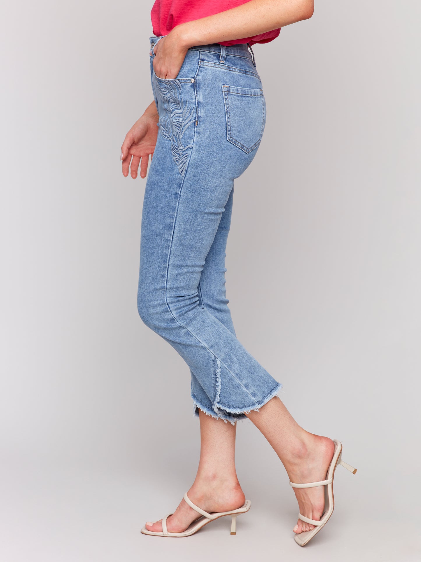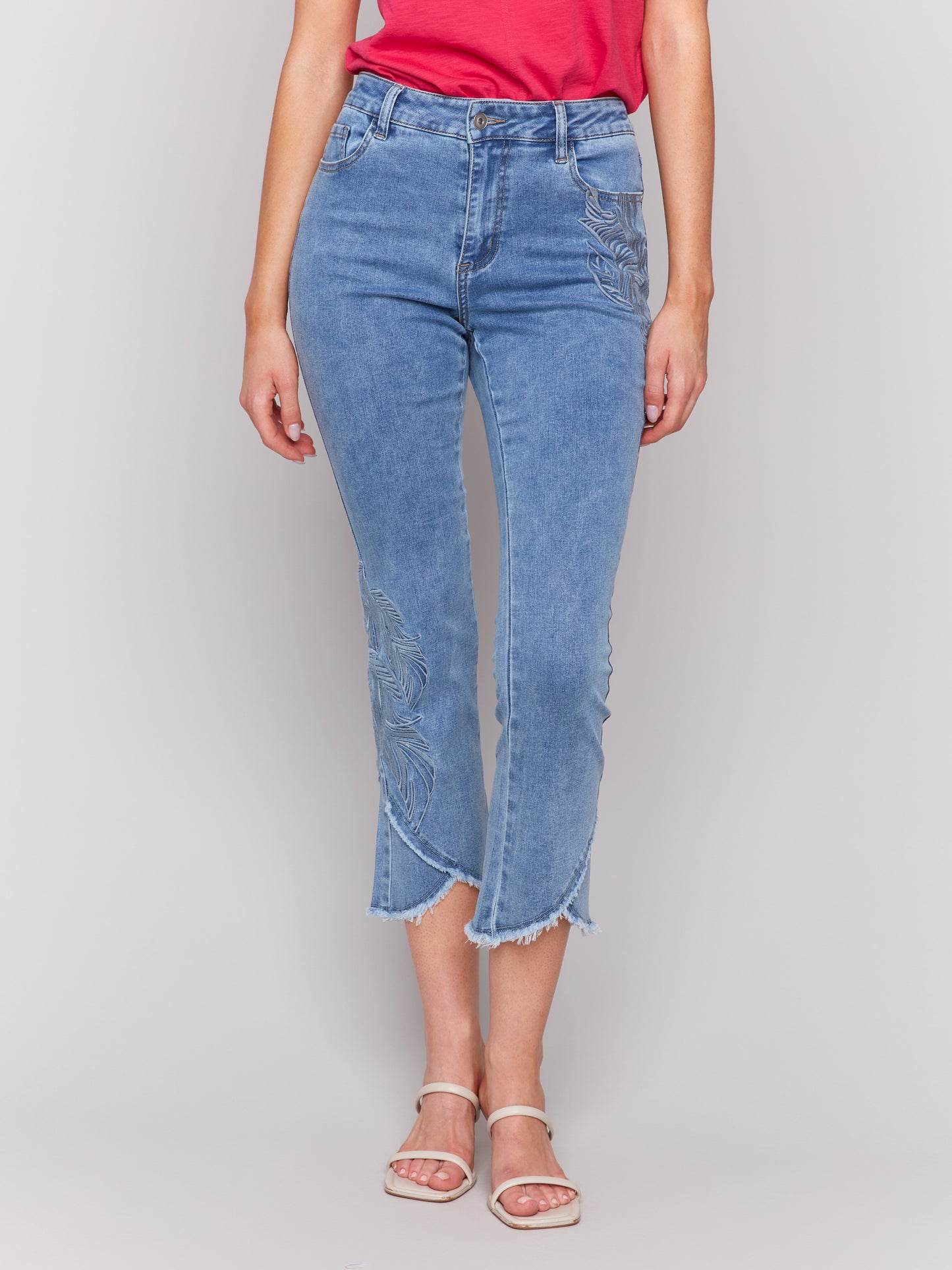 Charlie B -C5642-140-Boot Cut Embroidered Pant-LT Blue